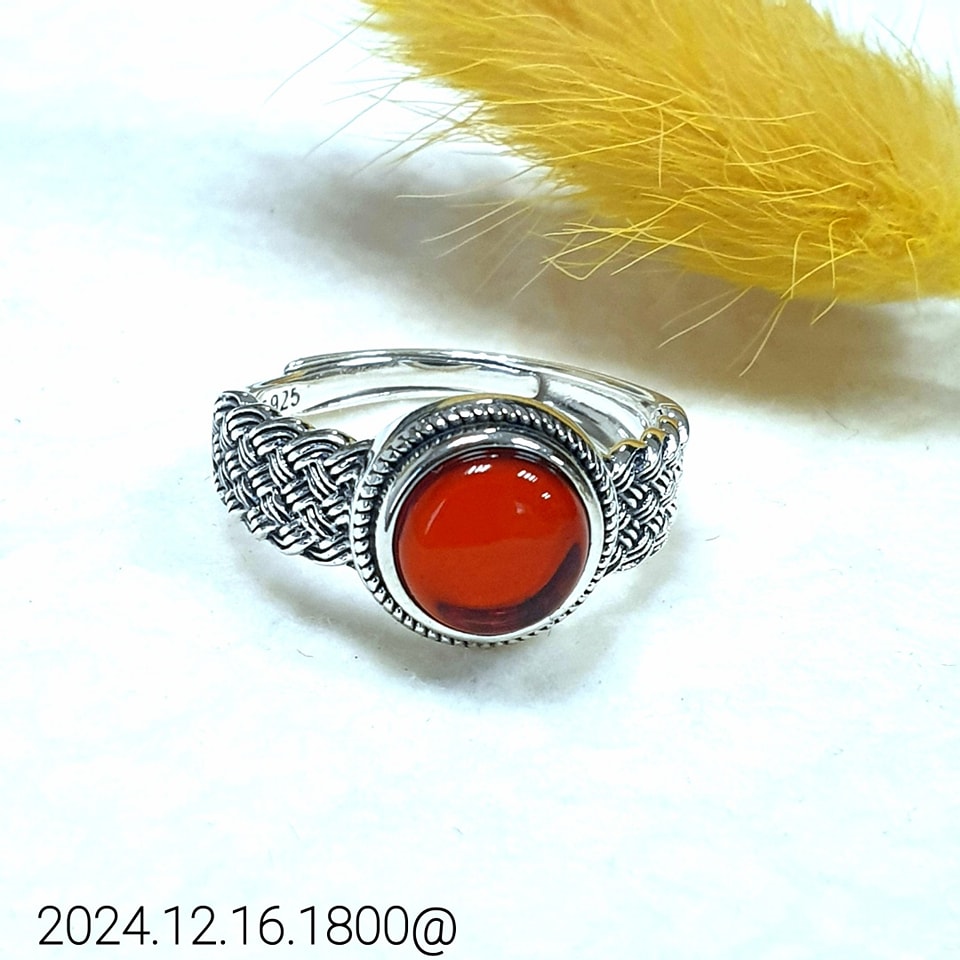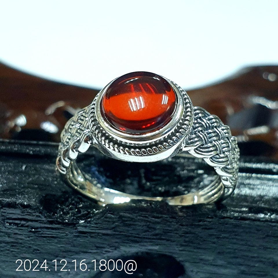✔ 材質:純銀戒托,鑲嵌天然血珀,溫潤透亮
