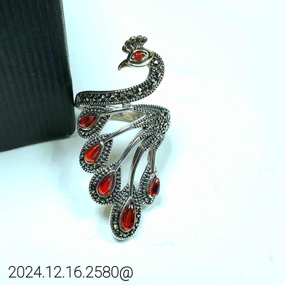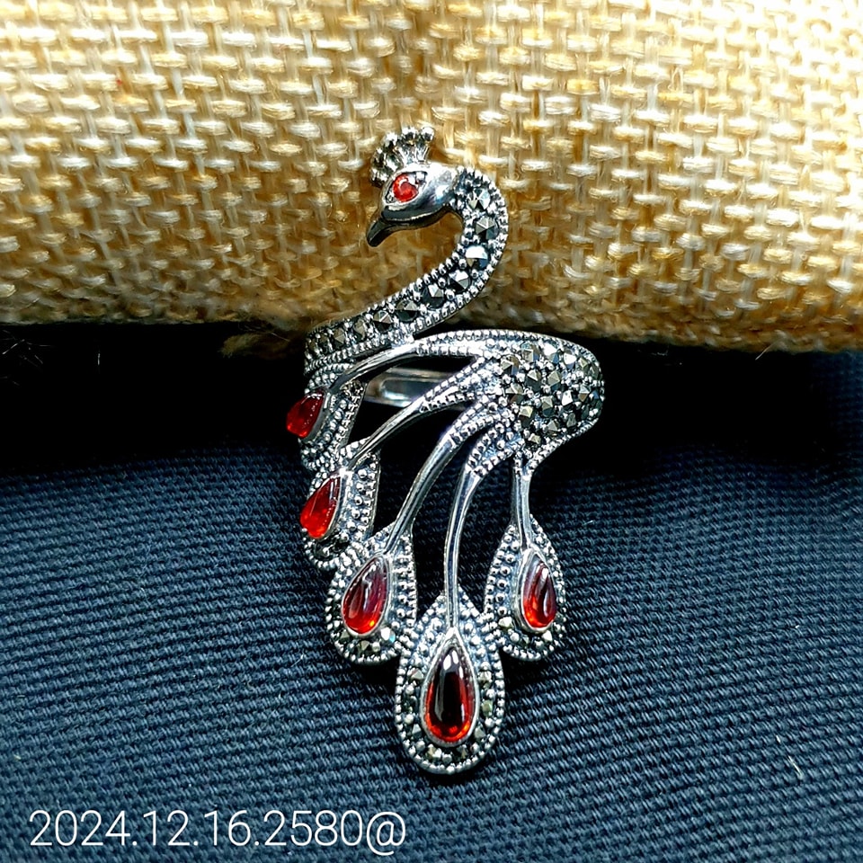 ✨ 純銀孔雀戒指|紅石榴石鑲嵌|優雅華麗風格 ✨