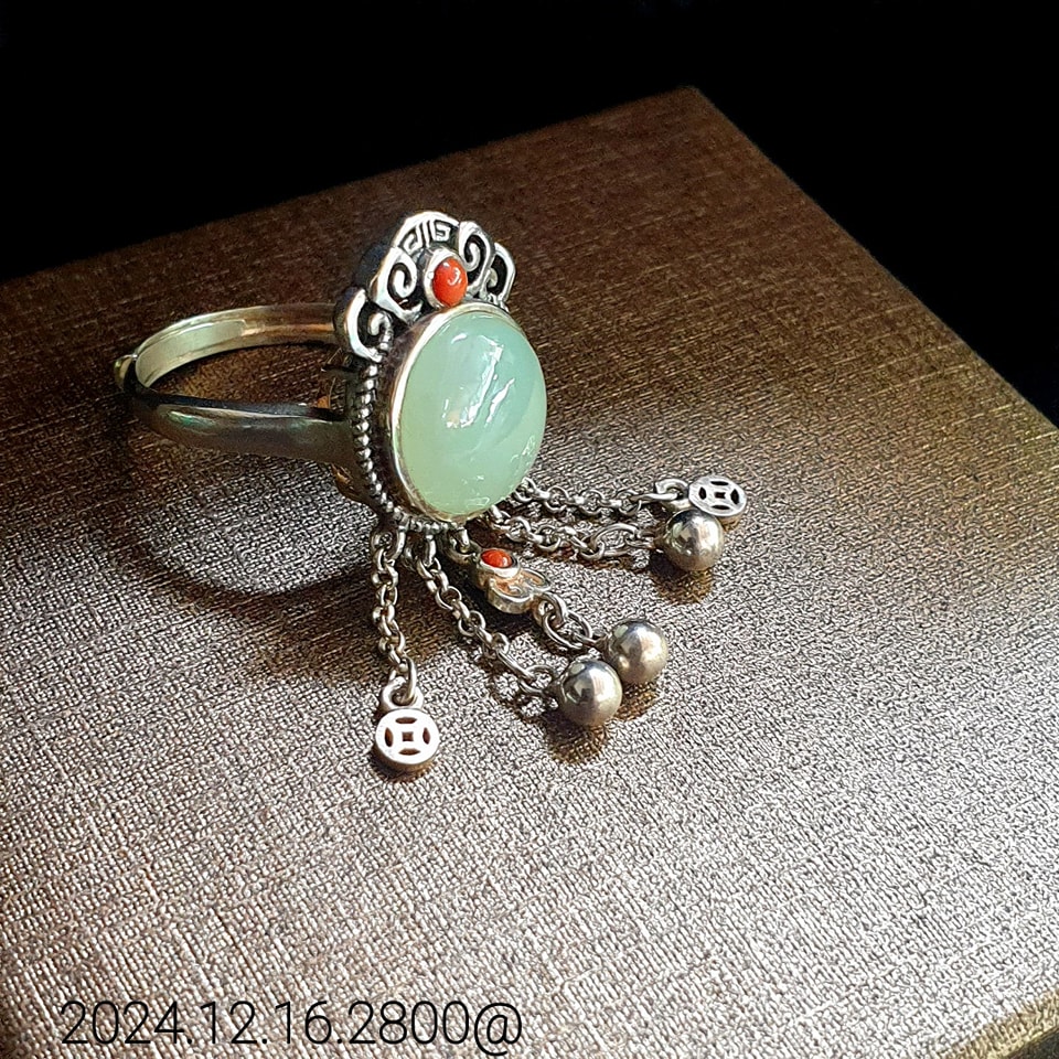 ✨ 靈動優雅・和田玉純銀流蘇戒指 ✨