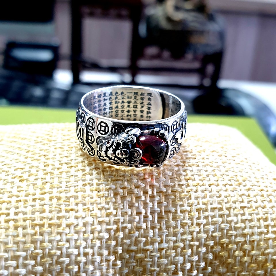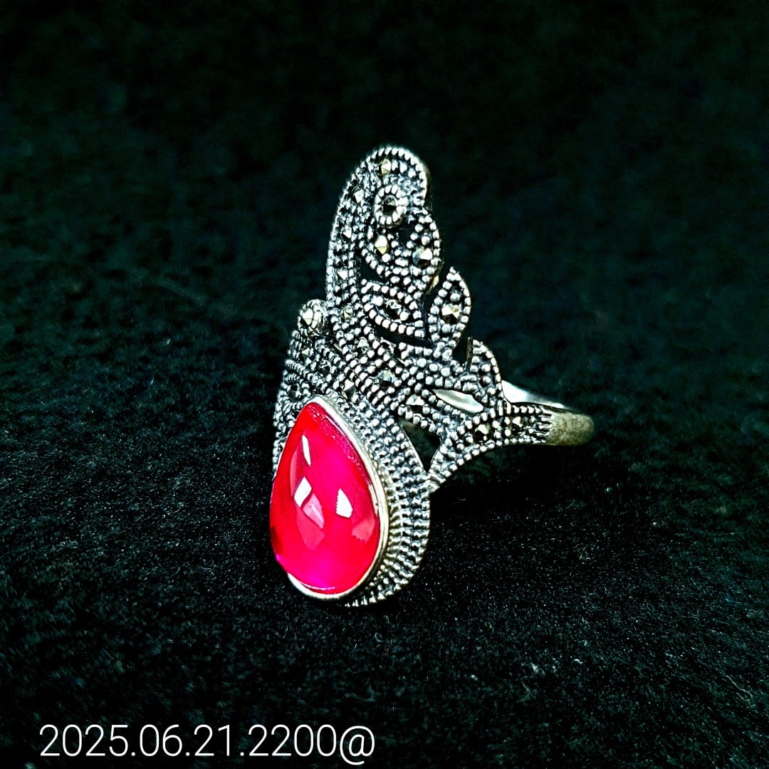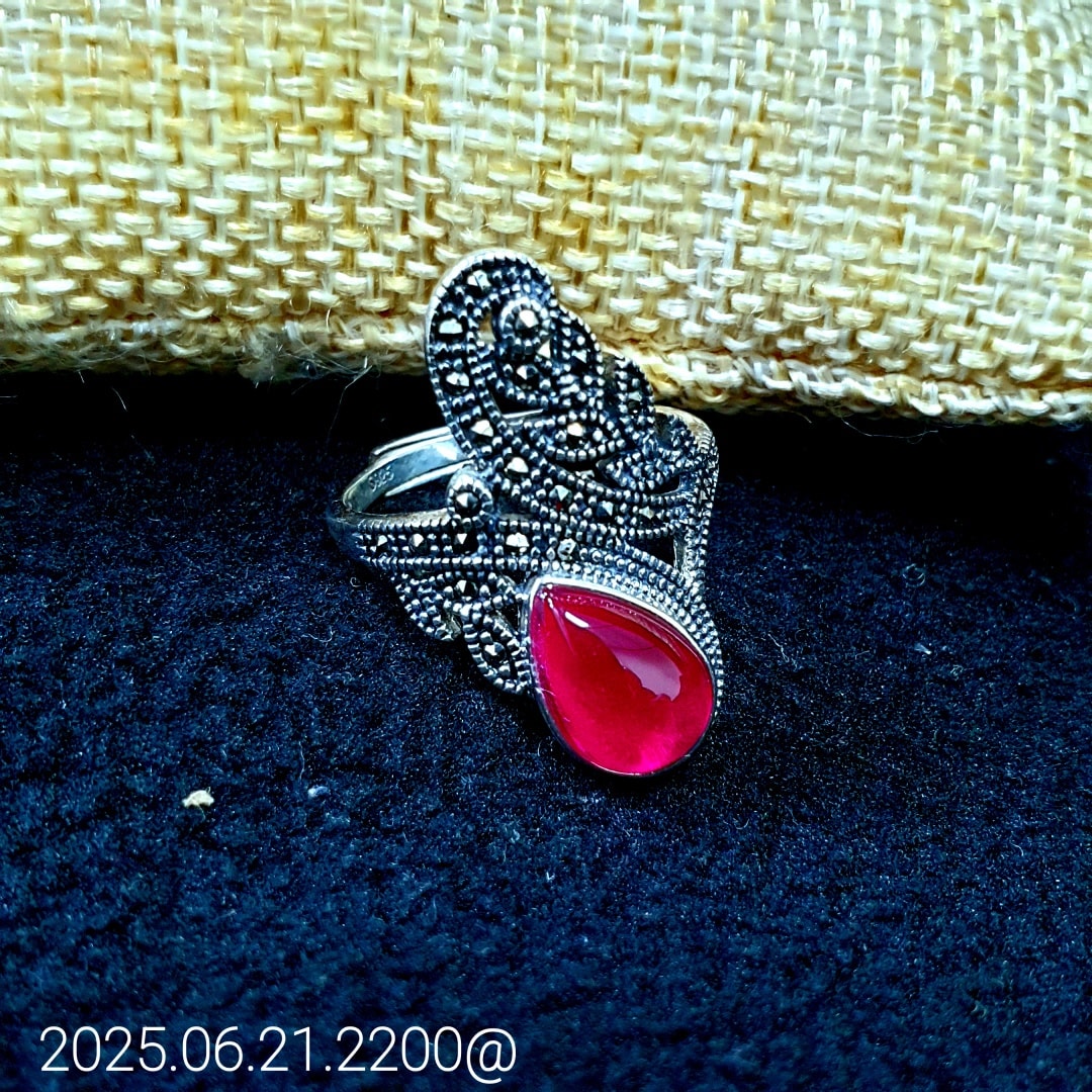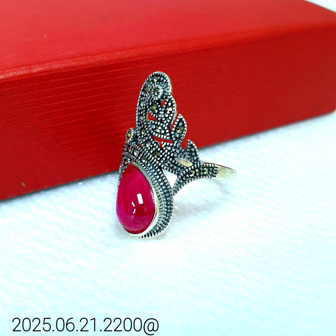 銀家銀飾 #紅剛玉戒指 #純銀飾品 #復古女王風