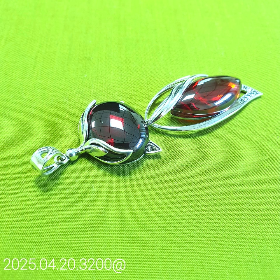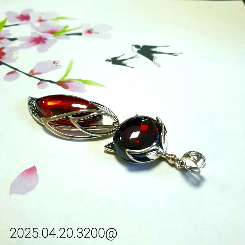 以靈動的狐仙為靈感,精工打造的純銀墬飾,鑲嵌兩顆紅石榴石,圓潤飽滿、色澤深紅,如靈魂深處燃燒的火焰。