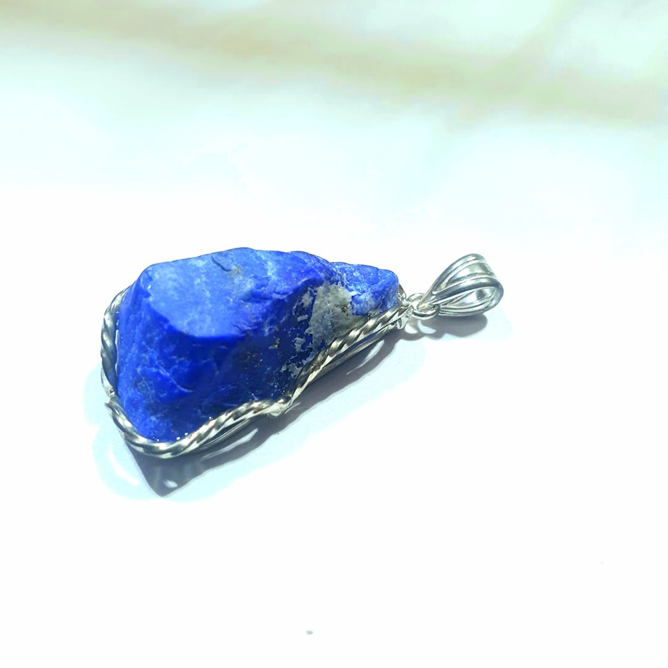 天然青金石原礦,保留自然形態,獨一無二,手工搭配925純銀線繞製而成。